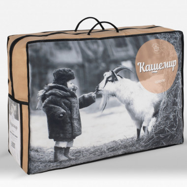 с логотипом;Кремовый Ткань хлопок, тик, наполнитель пух горной козы термоскрепленный,