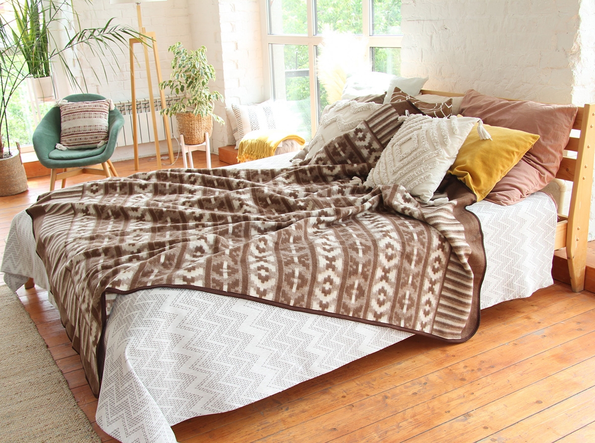 Одеяло п/шерсть 40% 150-205 жаккард цв .коричневый (Узбекистан)