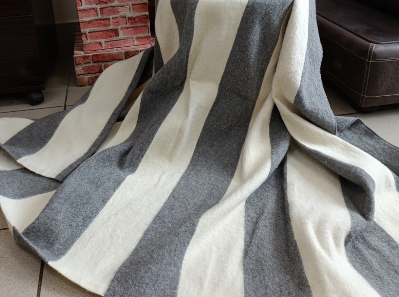 Одеяло п/шерсть 70% 200*220 жаккард "Полоса" цв. молочный пл 450