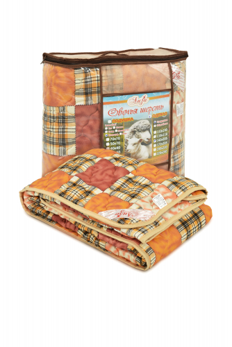 Одеяло Евро-макси с наполнением из термофиксированной овечьей шерсти плотностью 300 гр/кв.м., окантовано широкой тесьмой. Материал чехла из 100% полиэстера.