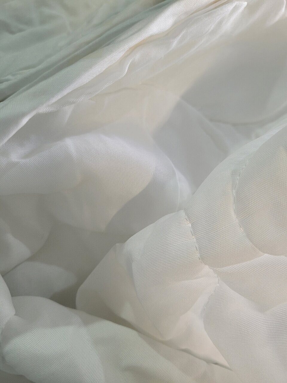 Искусственный лебяжий пух производится из высокосиликонизированного полиэфирного микроволокна. Благодаря шаровидной форме волокон, держит форму, не сбивается и не слеживается. Главное преимущество с сравненнии с натуральным пухом - исключение развития живых организмов (грибок, клопы), не накапливает запахов и не вызывает аллергии.