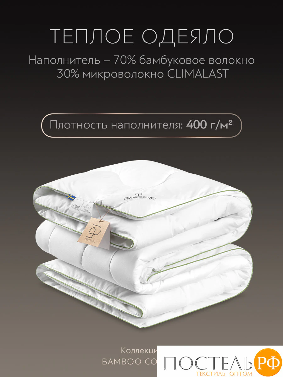 Теплое стеганое одеяло коллекции Bamboo Cotton от бренда PRIME PRIVE — это идеальное сочетание комфорта и заботы о природе. Чехол одеяла выполнен из 100% хлопкового тика, а наполнитель состоит из 70% бамбукового волокна и 30% микроволокна Climalast с плотностью 400 г/м2.