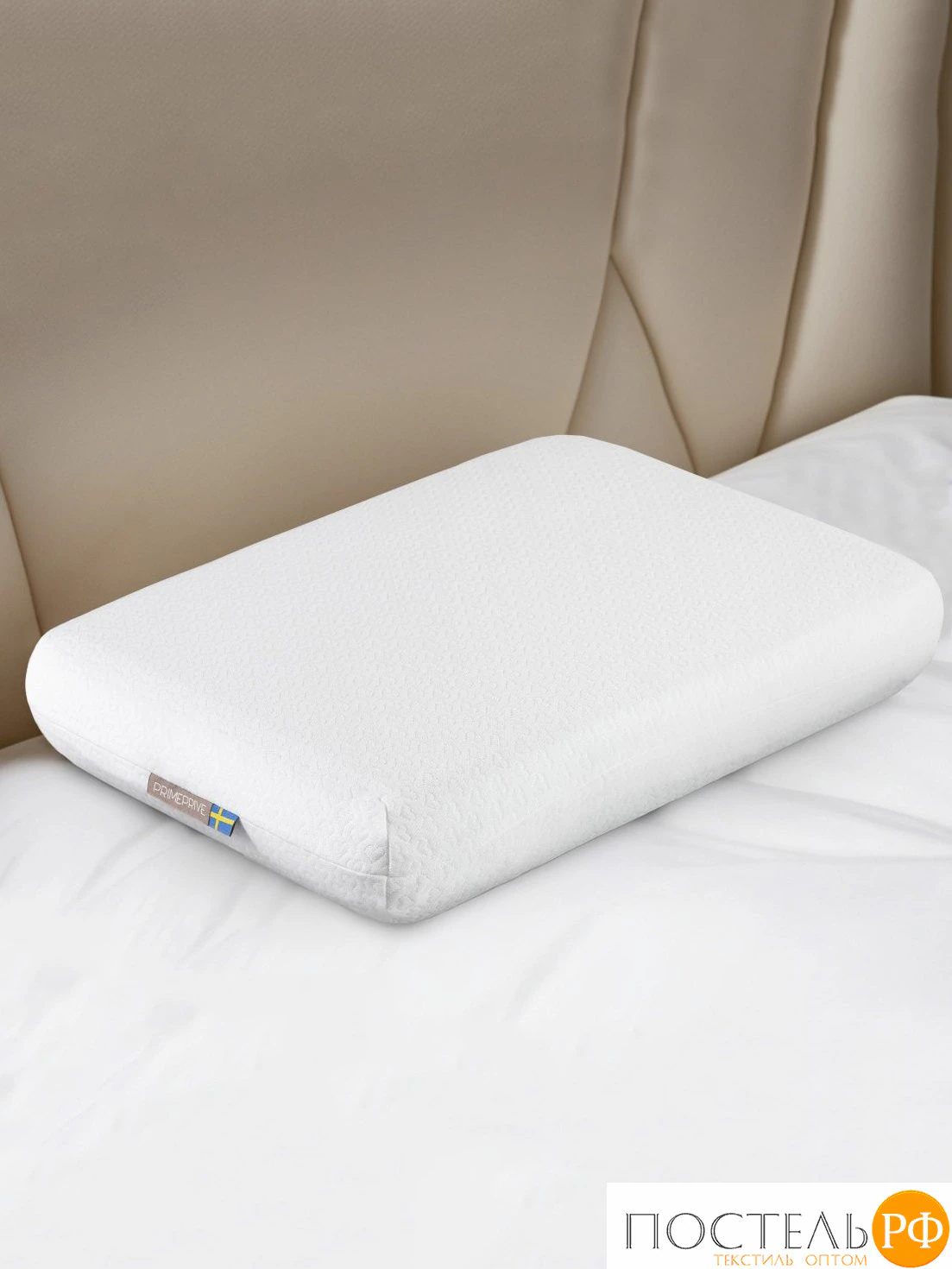 Подушка анатомическая 59х38х8: вязкоэластичный пенополиуретан с эффектом памяти Memory Foam. Несъемный внутренний чехол: 100% хлопок; съемный внешний чехол: 100% полиэстер.