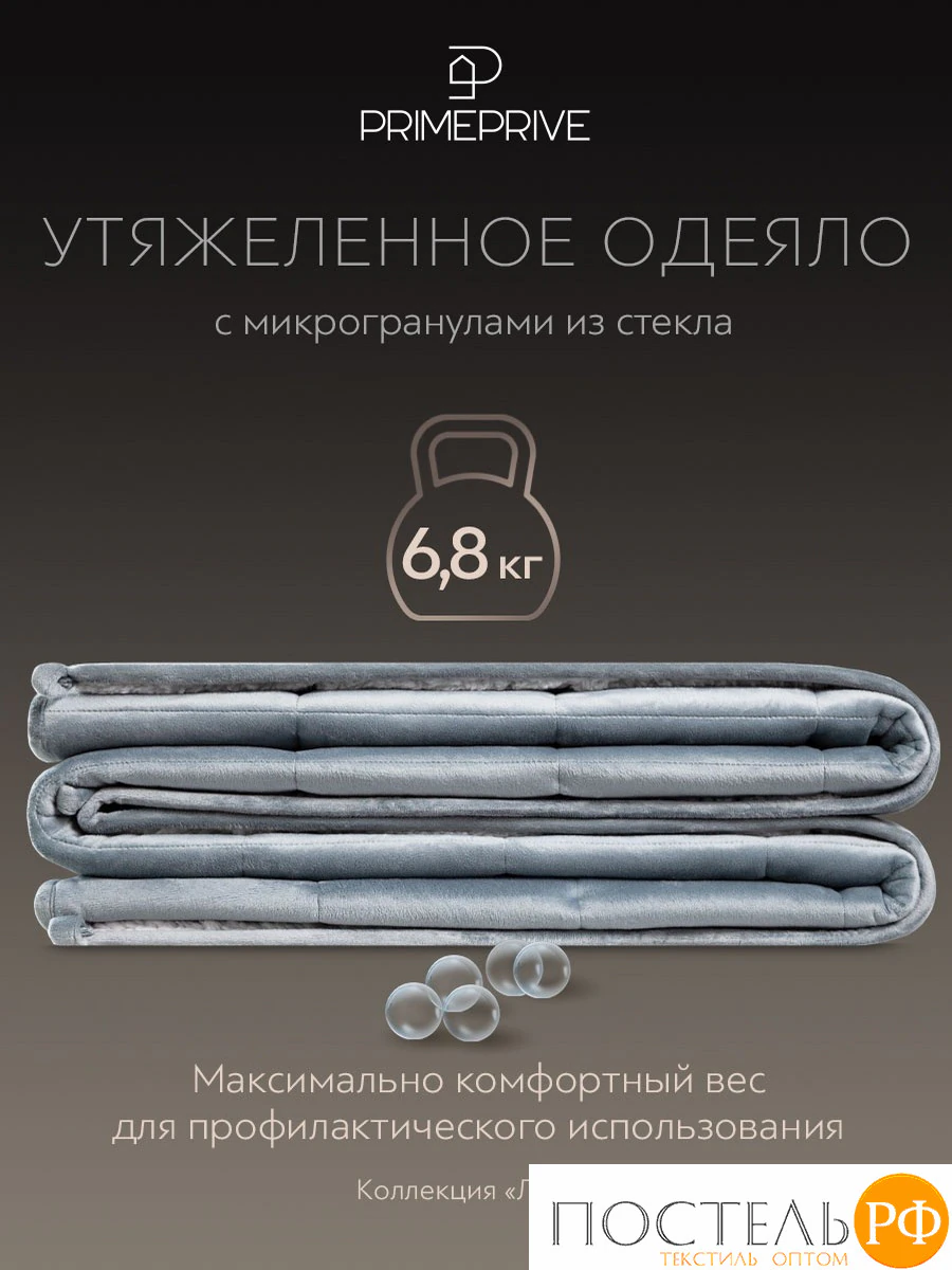 PRIME PRIVE ЛУНД сер Одеяло утяжеленное 172x205, 1пр.,велюр / иск.мех/стекл.гранулы
