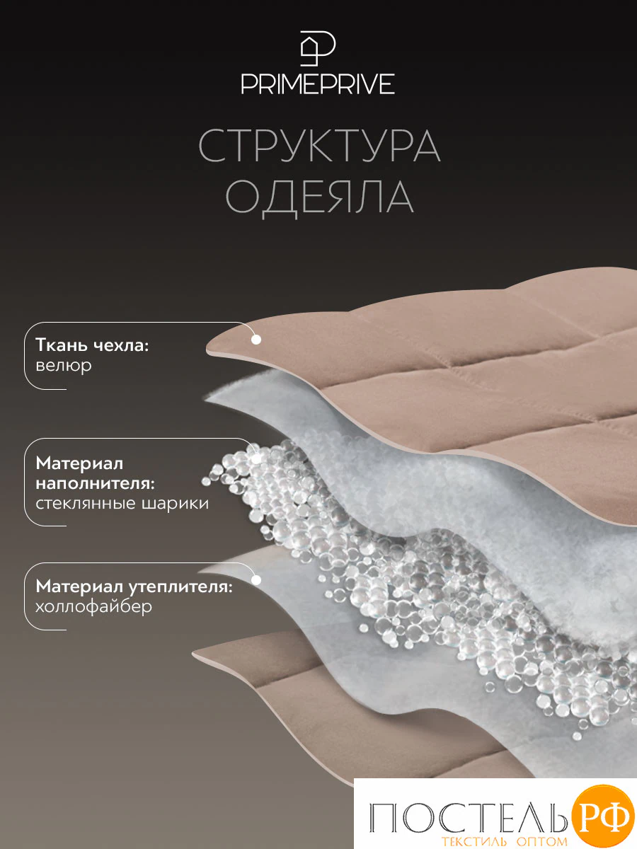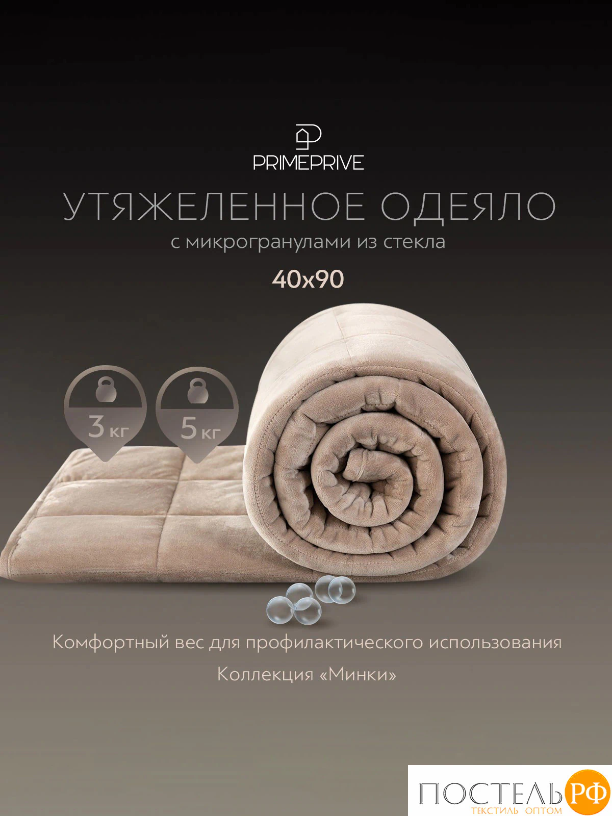 PRIME PRIVE МИНКИ беж Одеяло мини утяжеленное 40х90, 1пр., велюр/плстр/стекл.гранулы; 3 кг