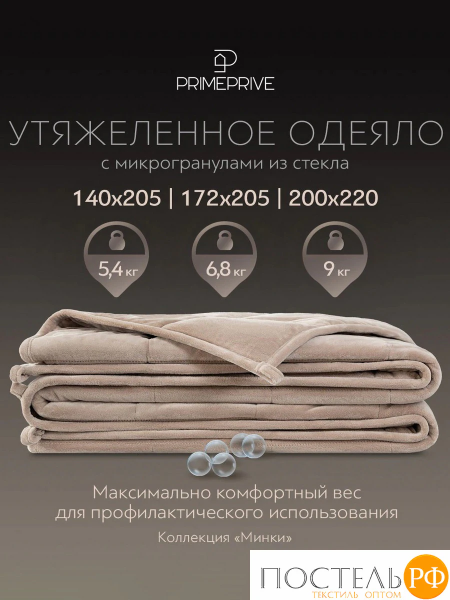 PRIME PRIVE МИНКИ беж Одеяло утяжеленное 172x205, 1пр., велюр/плстр/стекл.гранулы; 6,8 кг