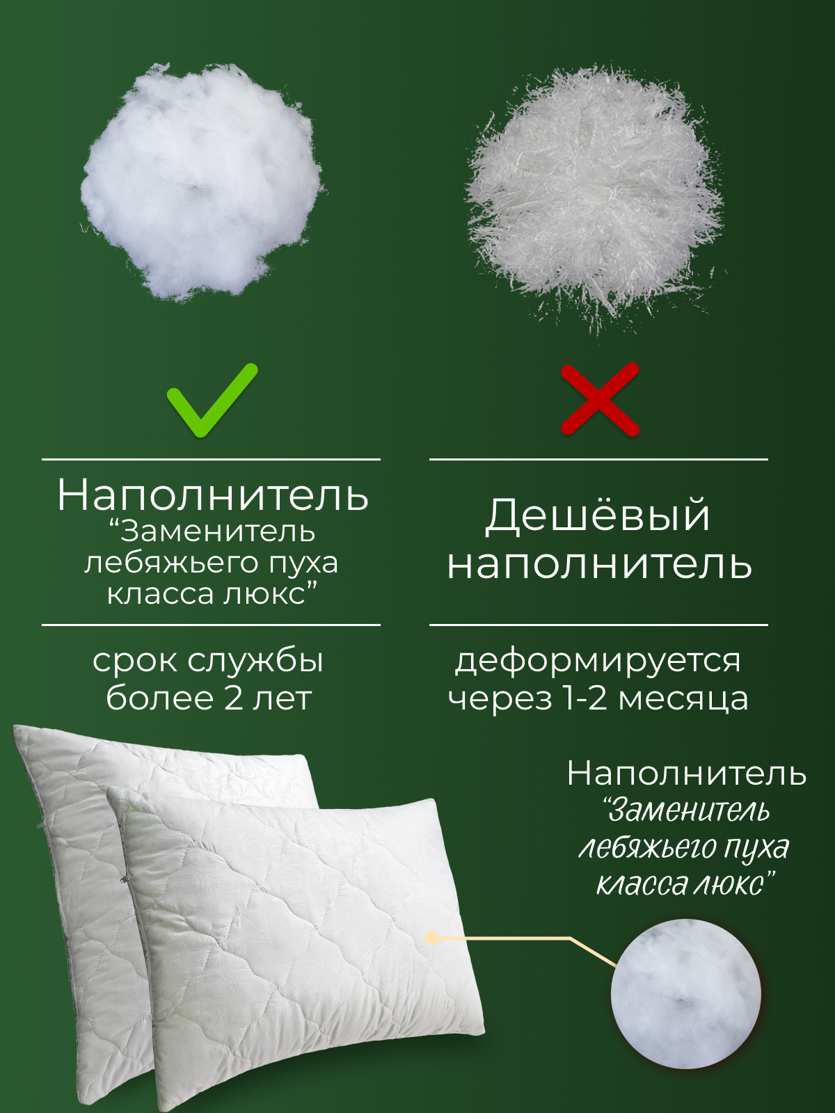 Состав наполнителя Бамбук-70%, п/э 30%; Зам.леб пуха-100% п/э микроволокно