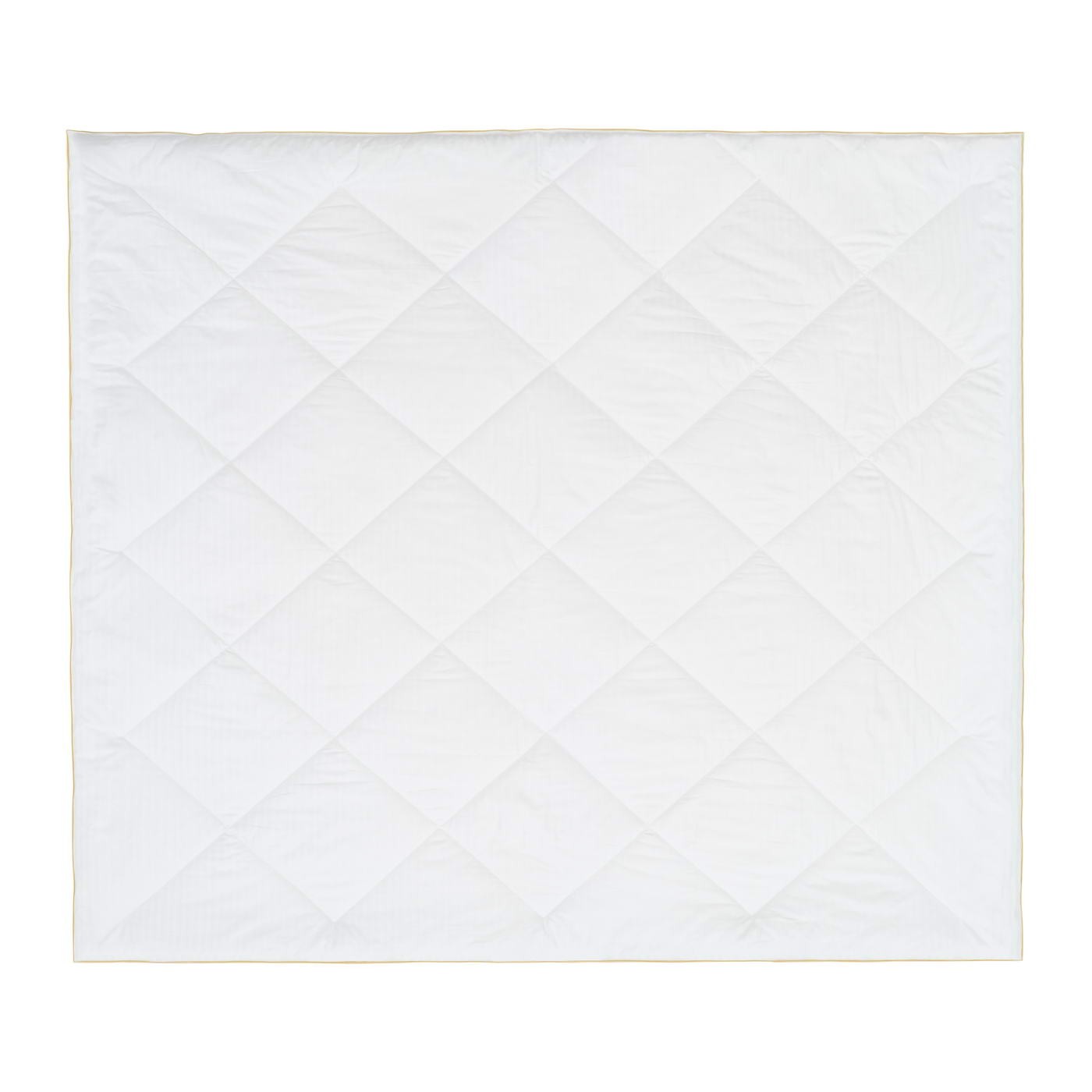 Особенности пошива: двойная отстрочка по краю одеяла, декорировано золотым кантом. Стежка одеяла -  ромб;