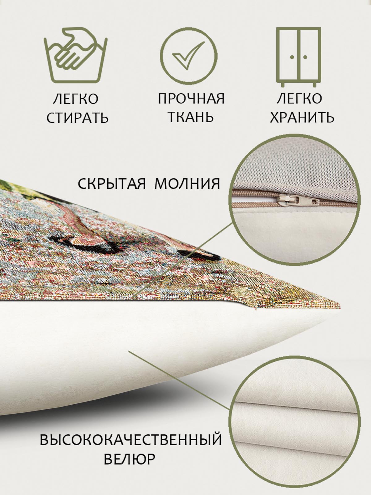 Затем специалисты нашего швейного производства бережно отшивают гобелен, превращая его в готовые изделия, которые уже более десяти лет радуют наших покупателей.