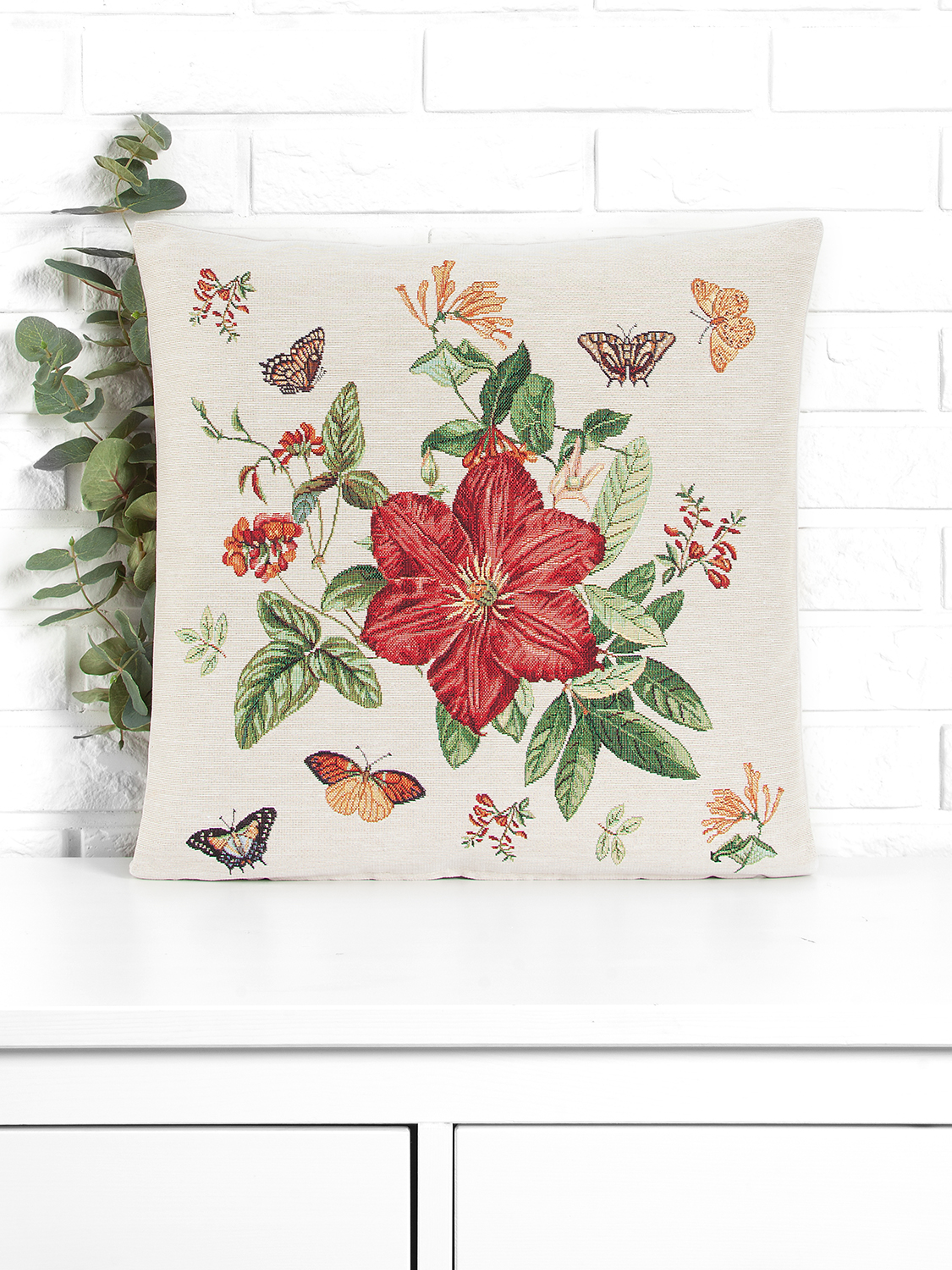 Рисунок создается переплетением нитей различных цветов и фактуры. Состав ткани: хлопок ( дающий фактуру и приятную тактильность ) и синтетические нити ( придающие износостойкость ). Плотность гобелена 410 г на кв.метр.
