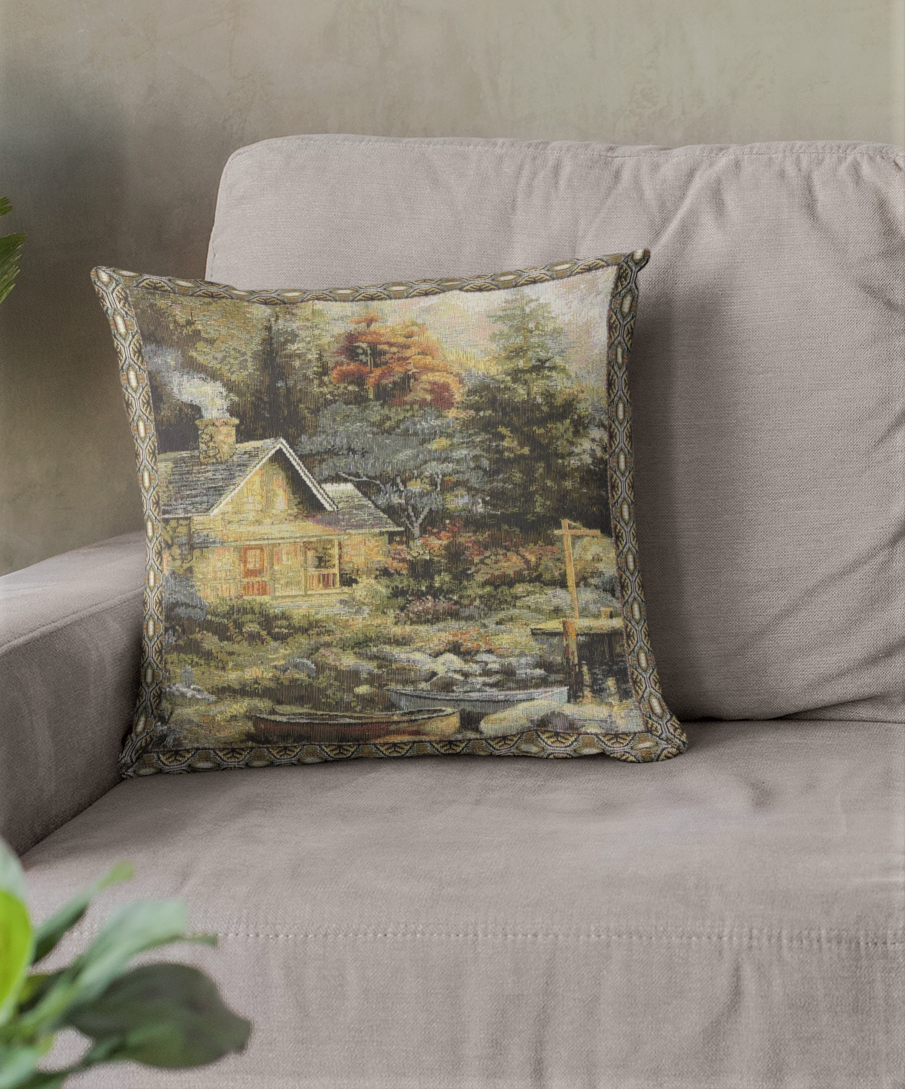 Затем специалисты нашего швейного производства бережно отшивают гобелен, превращая его в готовые изделия, которые уже более десяти лет радуют наших покупателей.