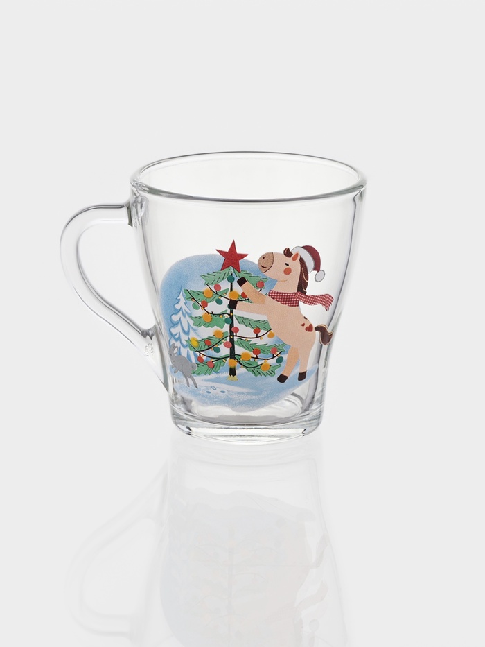Кружка «Грация. »Лошадка – новый год «, 250 мл, стекло, прозрачная, рисунок МИКС
