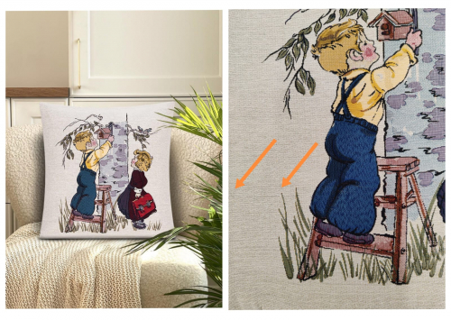 Затем специалисты нашего швейного производства бережно отшивают гобелен, превращая его в готовые изделия, которые уже более десяти лет радуют наших покупателей.