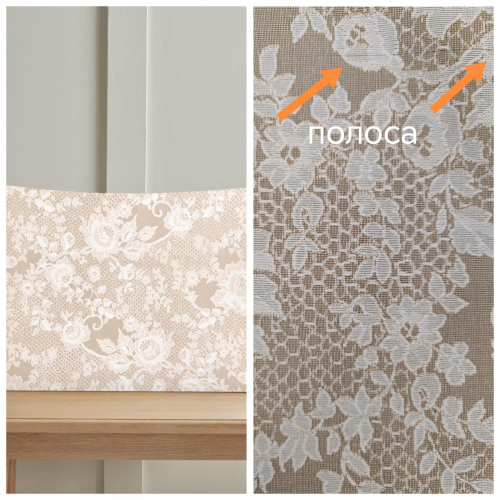 Рисунок создается переплетением нитей различных цветов и фактуры. Состав ткани: хлопок ( дающий фактуру и приятную тактильность ) и синтетические нити ( придающие износостойкость ). Плотность гобелена 410 г на кв.метр.