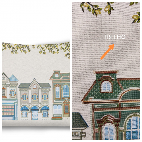Рисунок создается переплетением нитей различных цветов и фактуры. Состав ткани: хлопок ( дающий фактуру и приятную тактильность ) и синтетические нити ( придающие износостойкость ). Плотность гобелена 410 г на кв.метр.