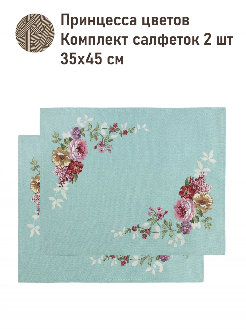 Outlet Принцесса цветов бирюзовый фон Комплект салфеток 2шт 35х45 см 2520442