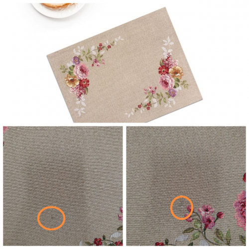 Рисунок создается переплетением нитей различных цветов и фактуры. Состав ткани: хлопок ( дающий фактуру и приятную тактильность ) и синтетические нити ( придающие износостойкость ). Плотность гобелена 410 г на кв.метр.