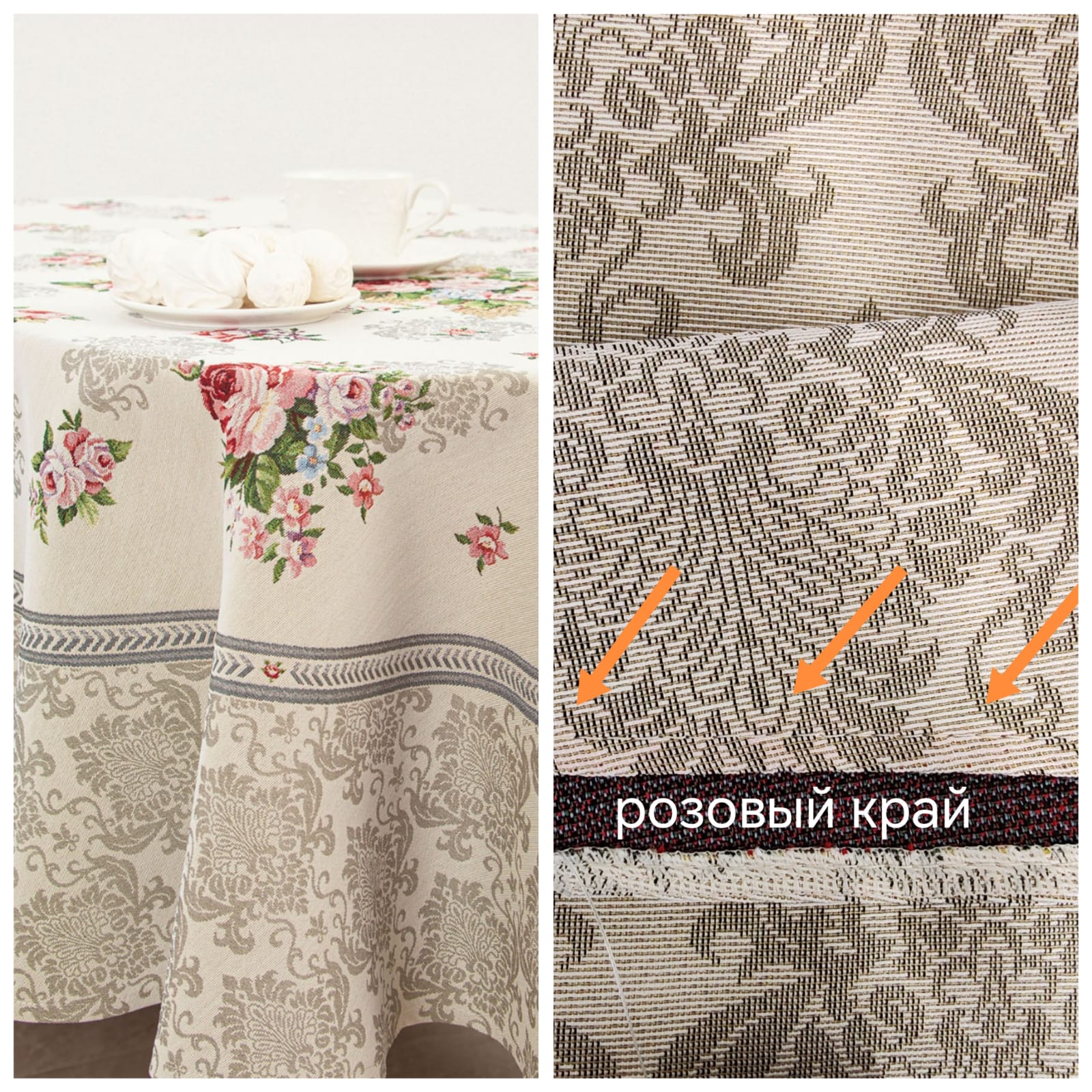 Outlet Розы Дамаск бежевый фон Скатерть овал 160х300 см 2519659 New