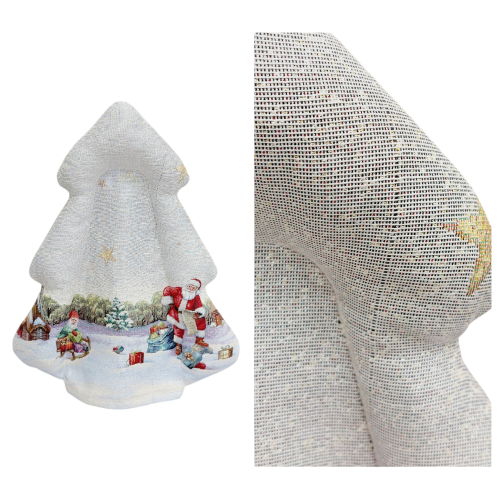 Рисунок создается переплетением нитей различных цветов и фактуры. Состав ткани: хлопок ( дающий фактуру и приятную тактильность ) и синтетические нити ( придающие износостойкость ). Плотность гобелена 410 г на кв.метр.