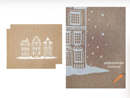 Рисунок создается переплетением нитей различных цветов и фактуры. Состав ткани: хлопок ( дающий фактуру и приятную тактильность ) и синтетические нити ( придающие износостойкость ). Плотность гобелена 410 г на кв.метр.