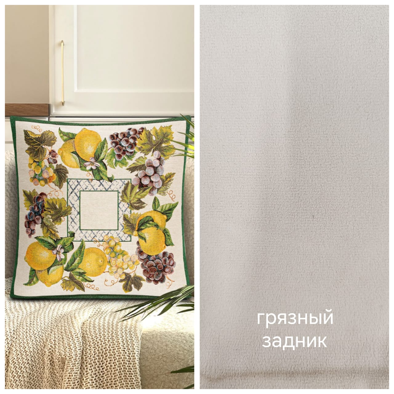 Outlet Жюра Виноград и лимоны зеленый бордюр Наволочка 45х45 см 2519809