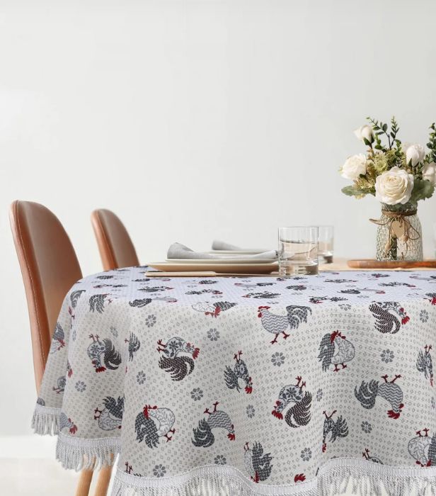 Петушки Бежевый фон Скатерть круг д140 см бахрома 2517180 Распродажа