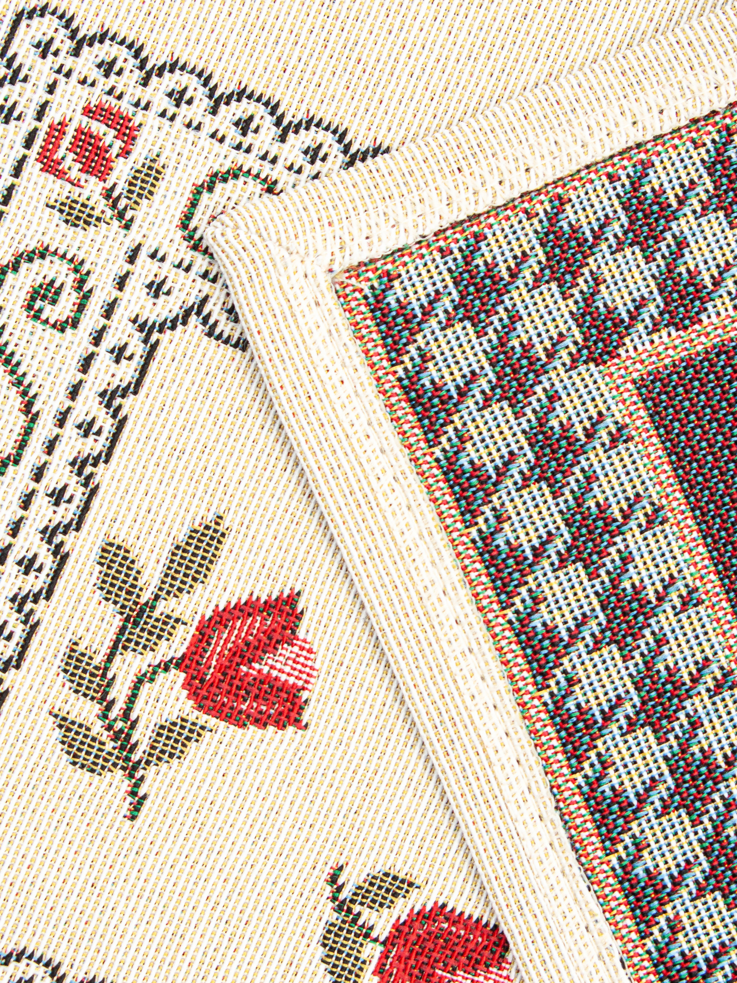 Рисунок создается переплетением нитей различных цветов и фактуры. Состав ткани: хлопок ( дающий фактуру и приятную тактильность ) и синтетические нити ( придающие износостойкость ). Плотность гобелена 410 г на кв.метр.