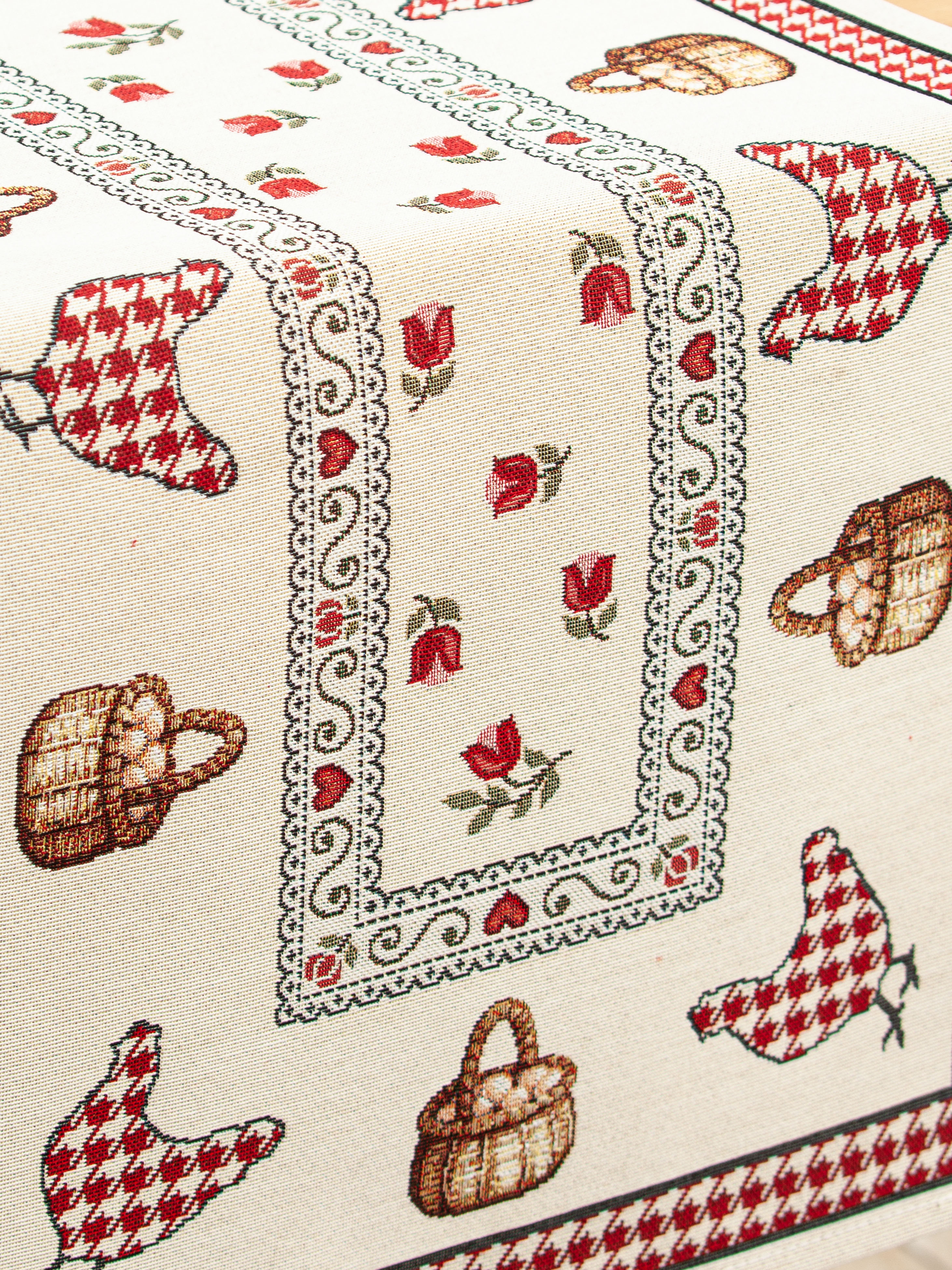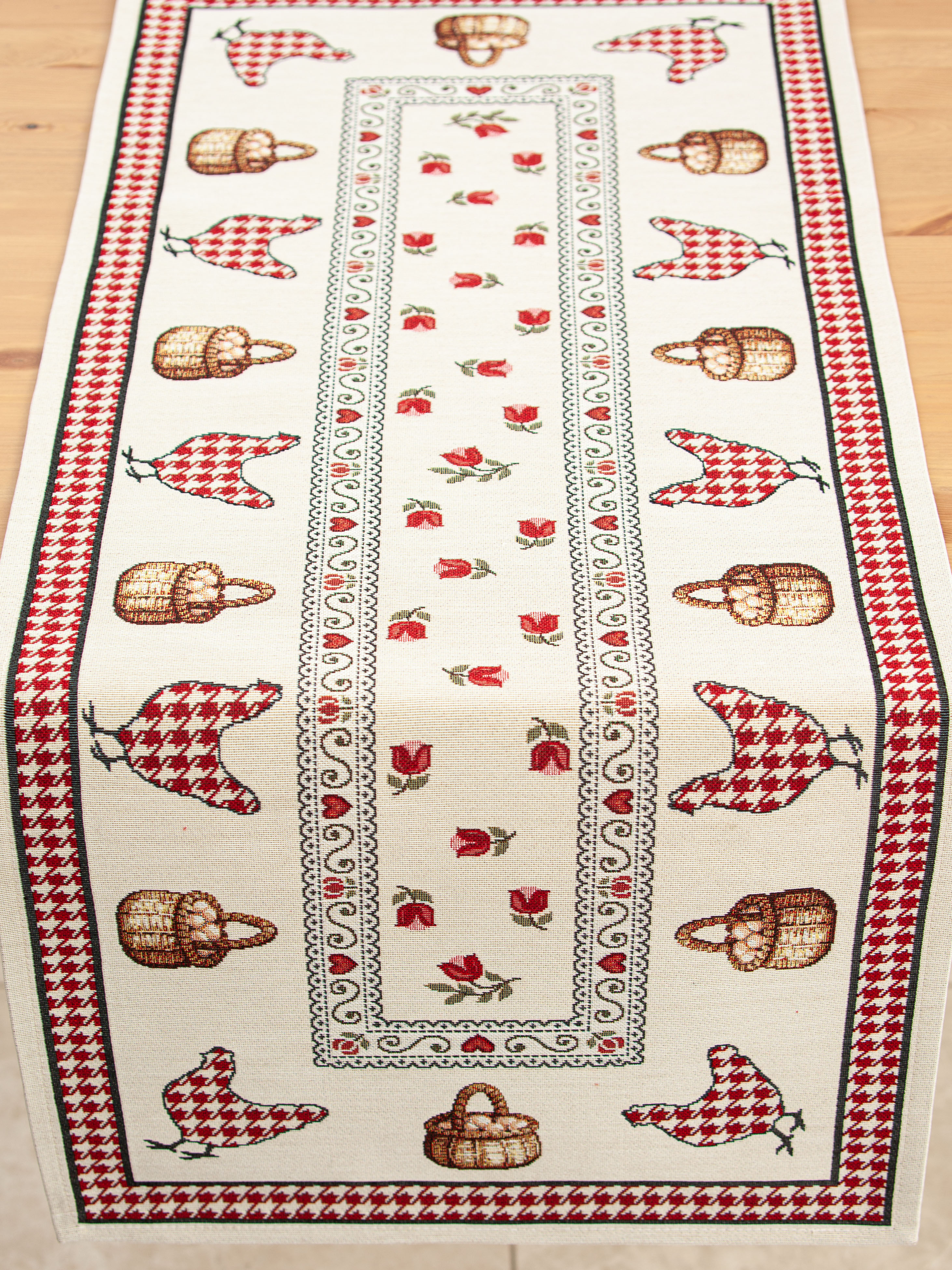 Петушки и курочки красный бордюр Салфетка 40х100 см 2100660