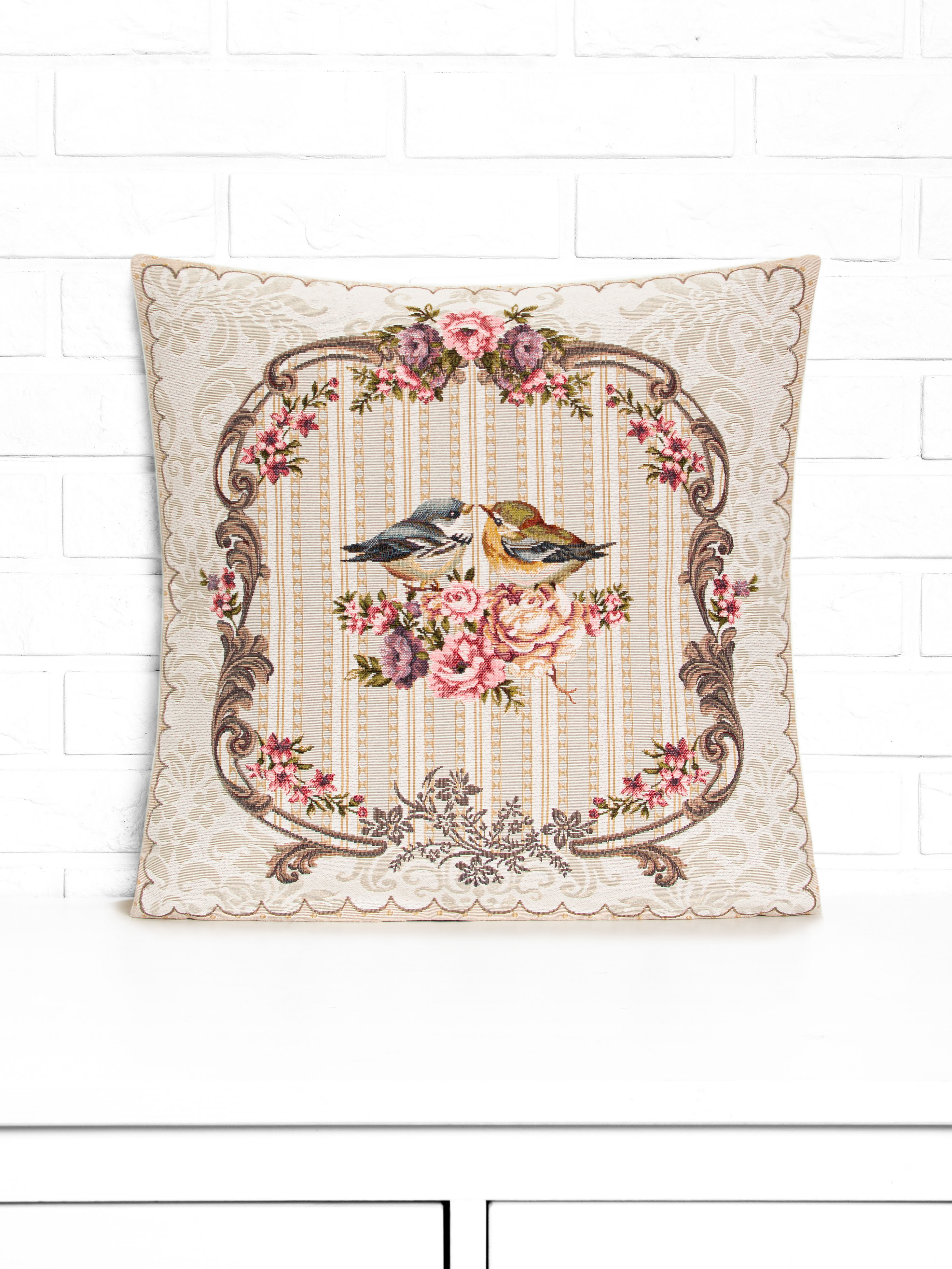 Рисунок создается переплетением нитей различных цветов и фактуры. Состав ткани: хлопок ( дающий фактуру и приятную тактильность ) и синтетические нити ( придающие износостойкость ). Плотность гобелена 410 г на кв.метр.