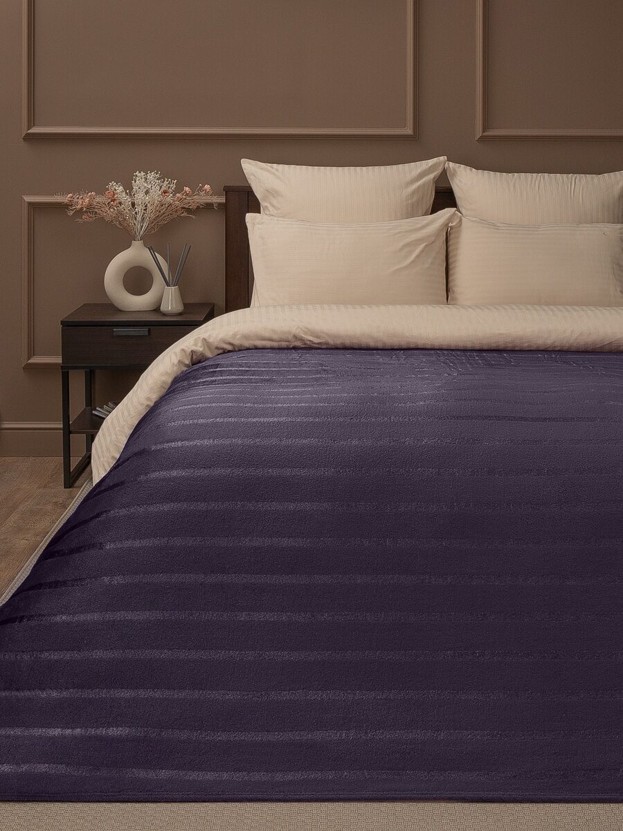 Плед фланель однотонный страйп Сиреневый 150*200 см