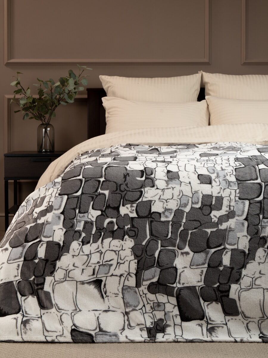 Плед фланель печатный скрутка Серый 140*200 см