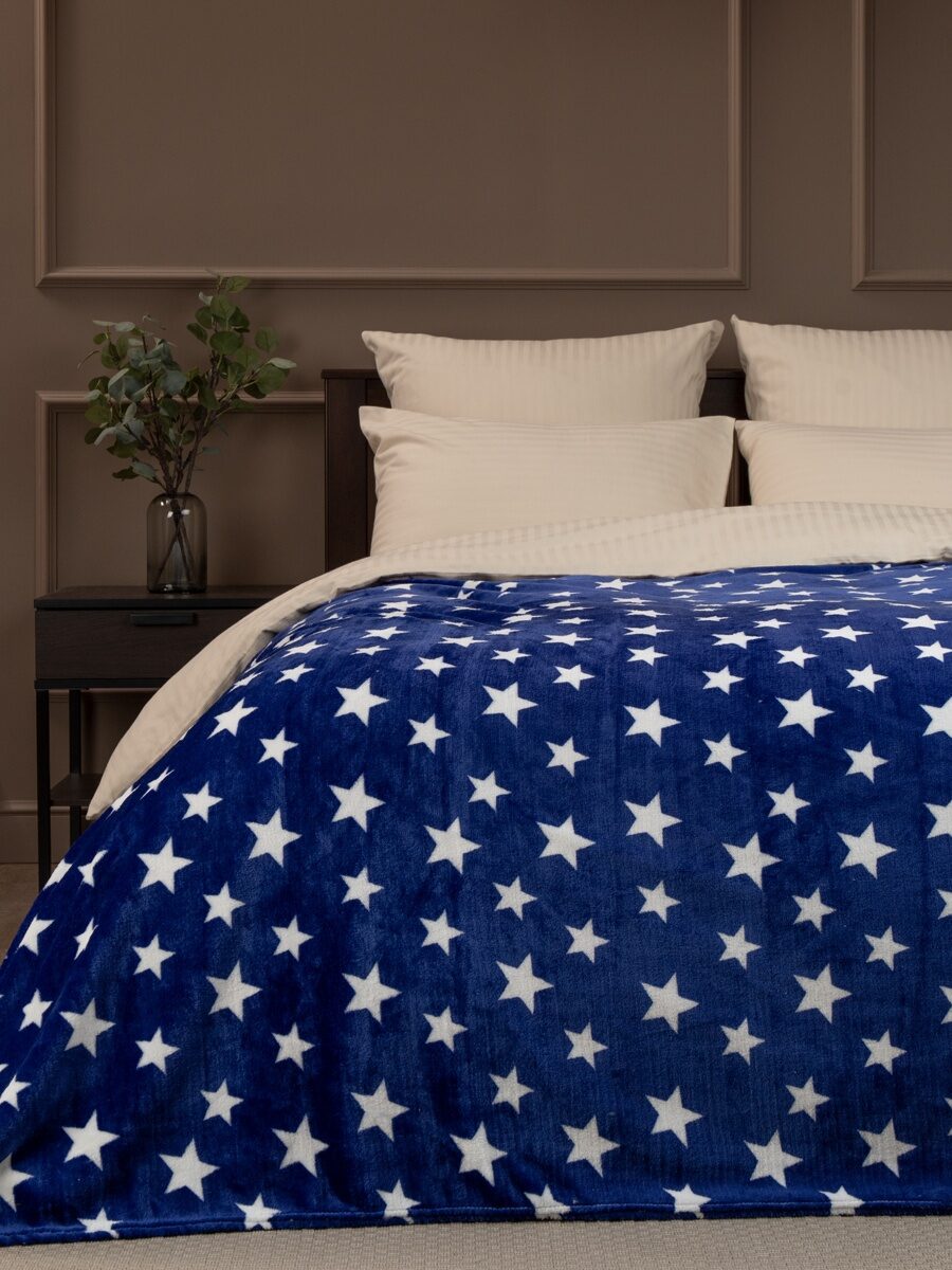 Плед фланель печатный скрутка Синий 140*200 см