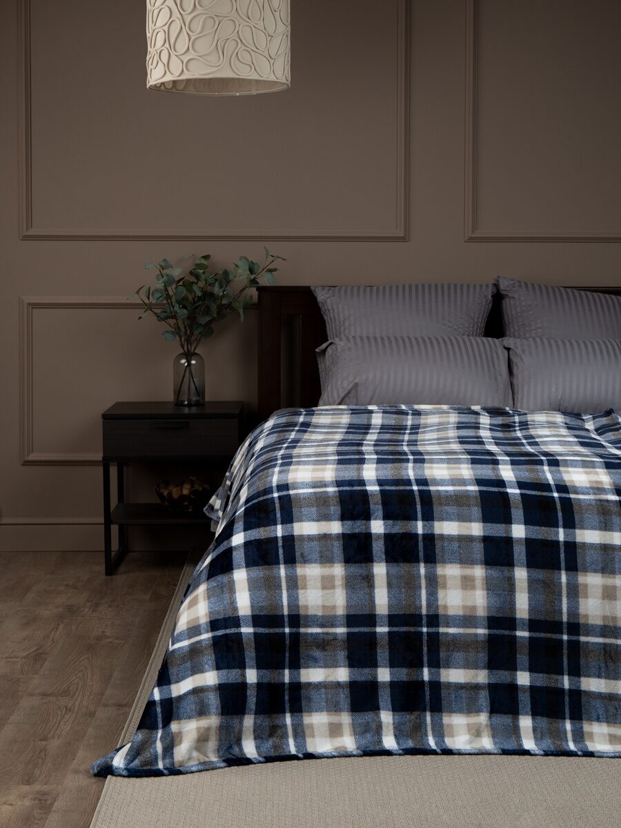 Плед фланель печатный скрутка Синий 150*200 см