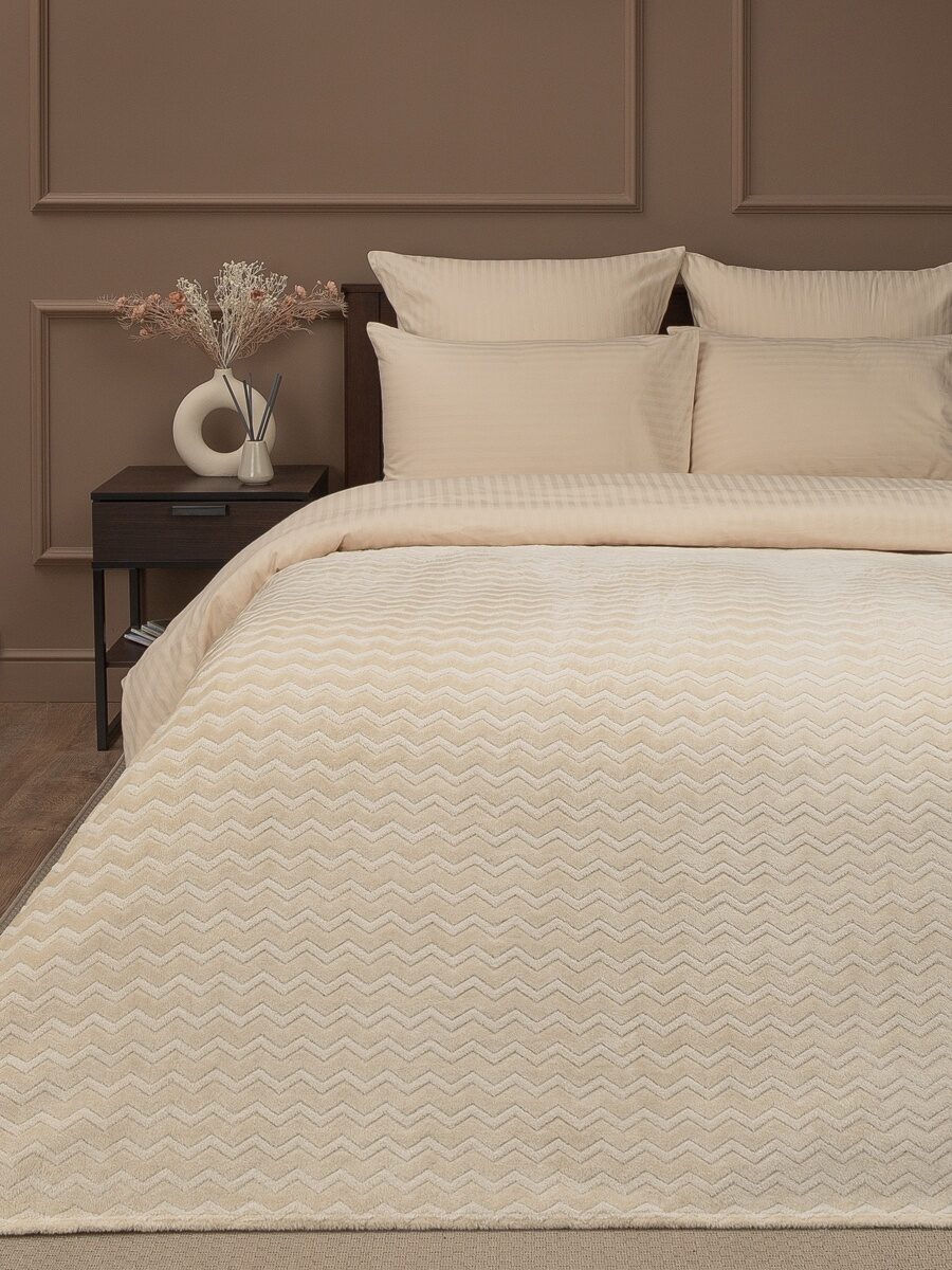 Плед фланель жаккард зигзаг Бежевый 150*200 см