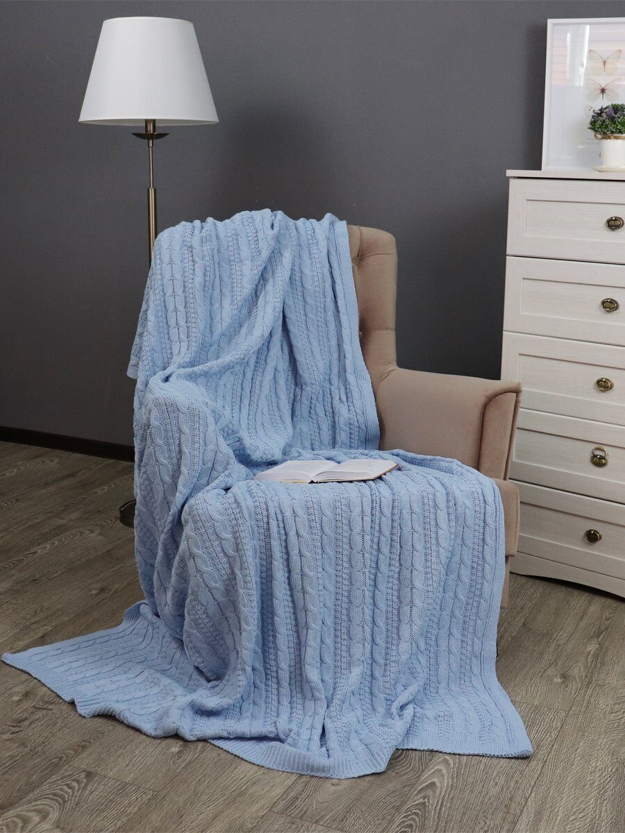 Плед вязаный хлопок Хлопок Голубой 150*200 см