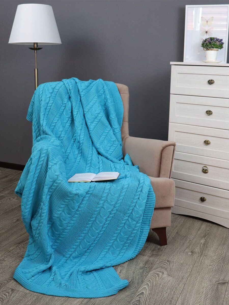 Плед вязаный акриловый Акрил Бирюзовый 180*200 см