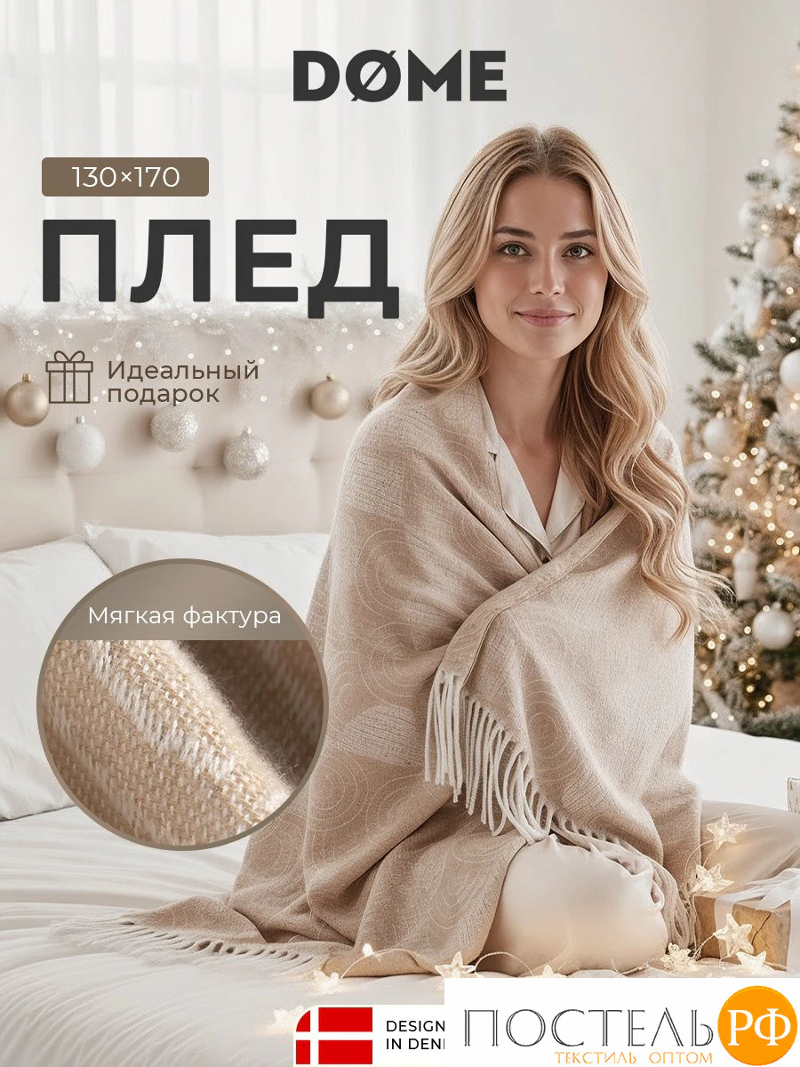 Уютный плед 130х170 см от бренда «DOME» (ДОМЕ) — идеальный аксессуар для комфорта в любую погоду.