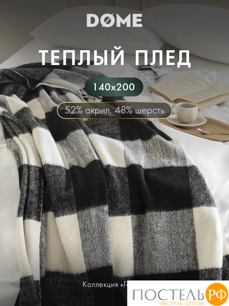 Плед в клетку «ГОЛЬМ» 140х200 см бренда «DOME» станет вашим верным спутником в прохладные вечера, подарит комфорт и ощущение защищённости.