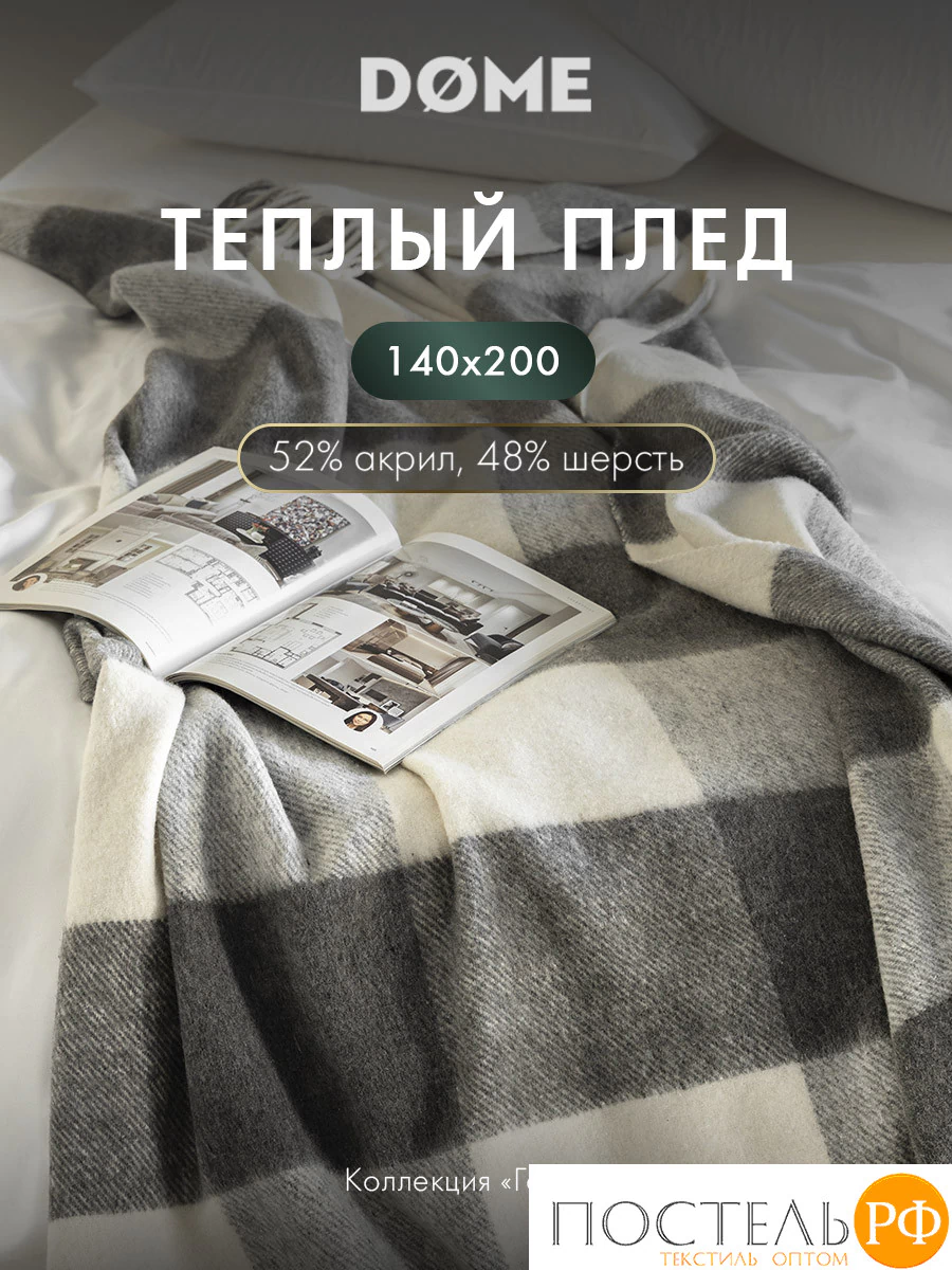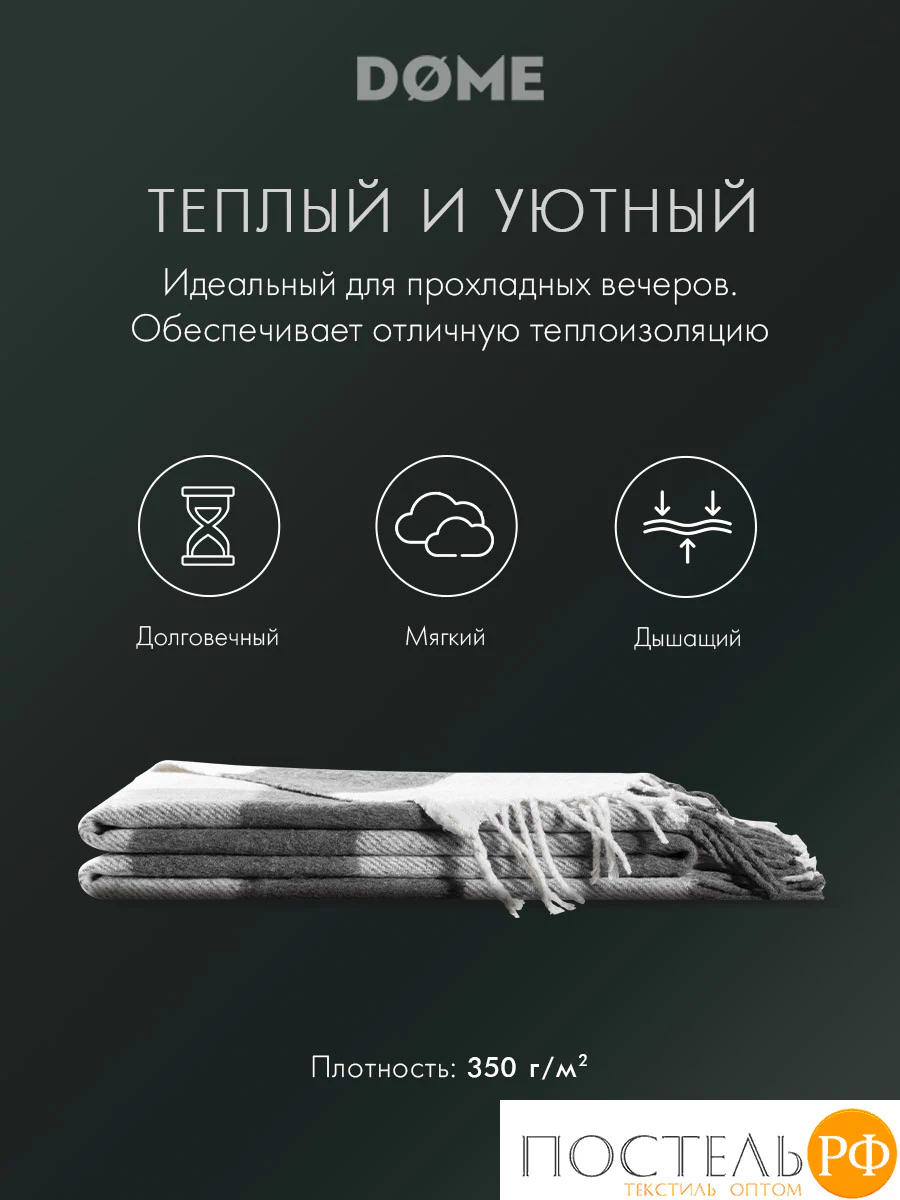 Плед в клетку «ГОЛЬМ» 140х200 см бренда «DOME» станет вашим верным спутником в прохладные вечера, подарит комфорт и ощущение защищённости.