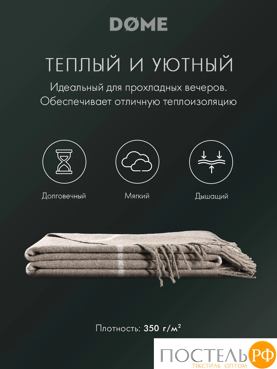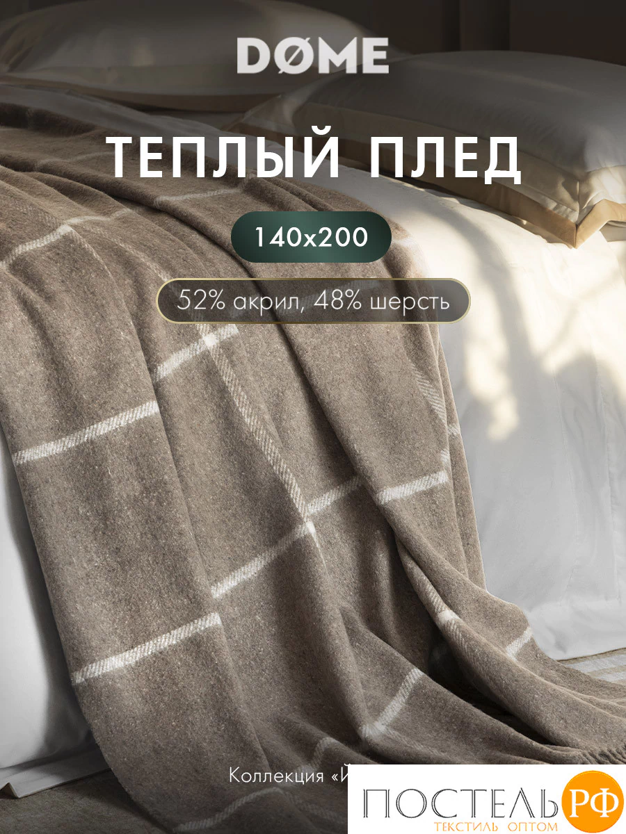 Плед в клетку «ЙЕРК» 140х200 см бренда «DOME» станет вашим верным спутником в прохладные вечера, подарит комфорт и ощущение защищённости.
