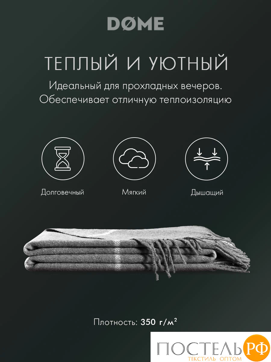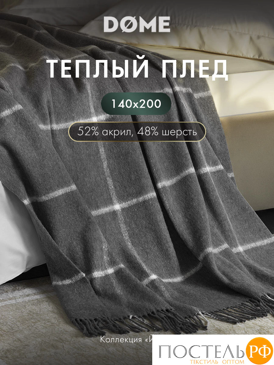 Плед в клетку «ЙЕРК» 140х200 см бренда «DOME» станет вашим верным спутником в прохладные вечера, подарит комфорт и ощущение защищённости.