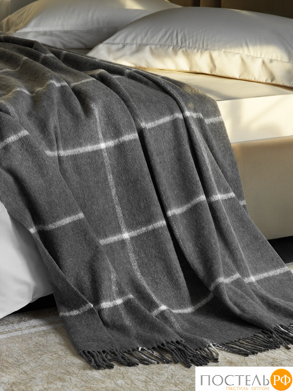 Плед изготовлен из высококачественных материалов: 52% акрила и 48% шерсти. Акрил придаёт изделию мягкость и износостойкость, а шерсть обеспечивает тепло и приятные тактильные ощущения.