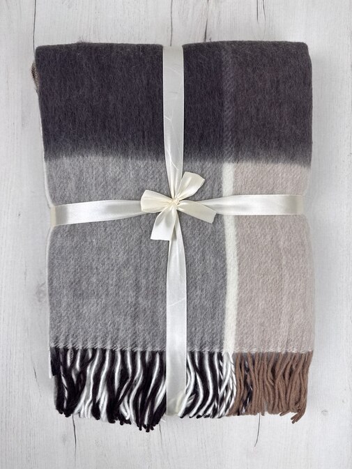 Плед Эльф с бахромой Влади, белый-бежевый-коричневый, LIAM