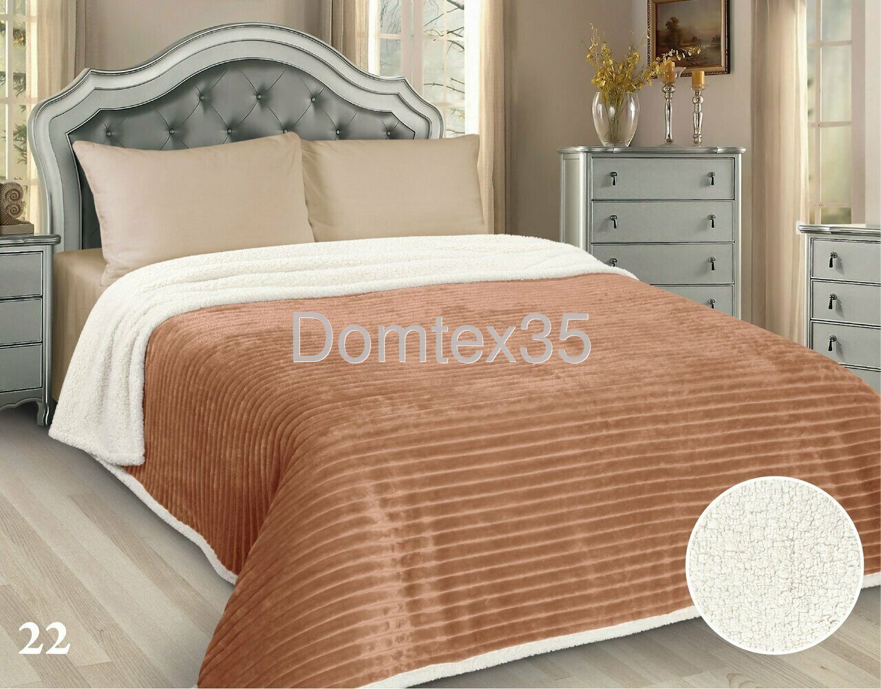 На лицевой стороне цветной фон. Обратная сторона напоминает овчинку. очень нежную и теплую. Строгий теплый плед. можно использовать в качестве одеяла. Данный плед на кровать. диван. кресло не оставит равнодушным всех. кто любит тепло. уют и домашний комфорт.