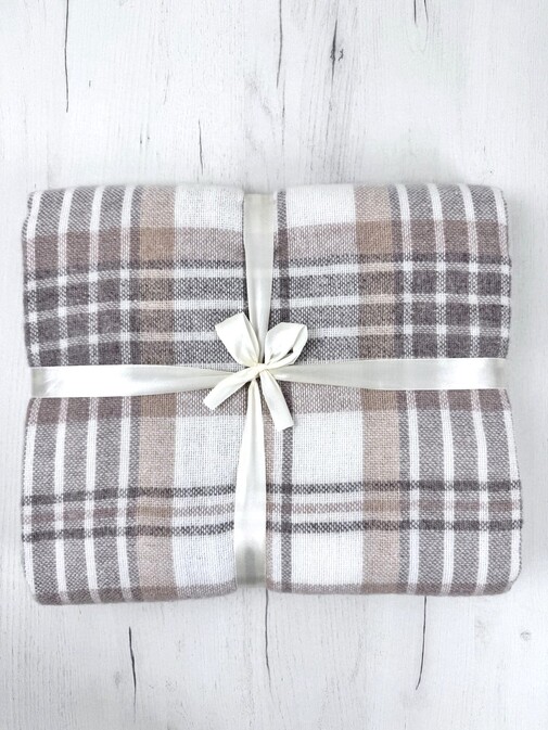 Плед Метро с бахромой Влади, белый-бежевый-коричневый, CANNY