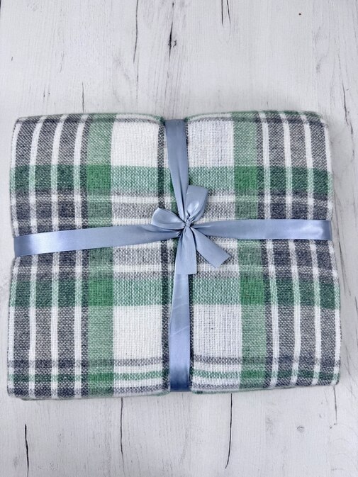 Плед Метро с бахромой Влади, белый-серый-зеленый, CANNY