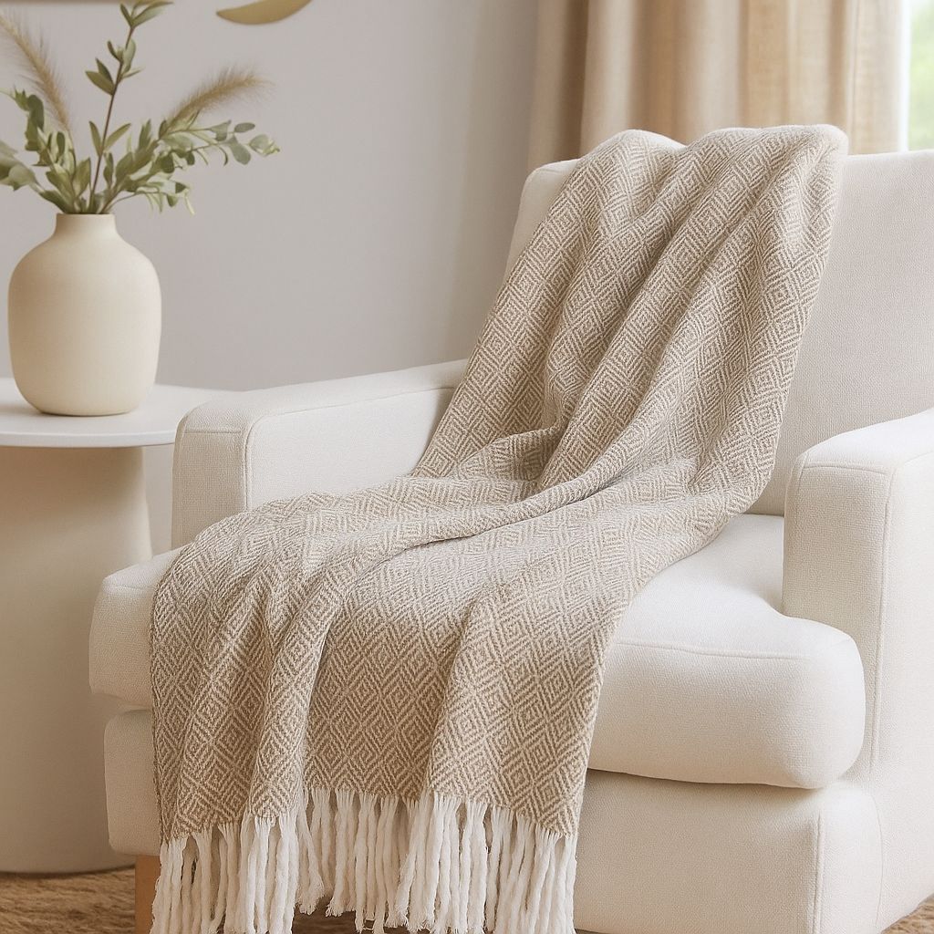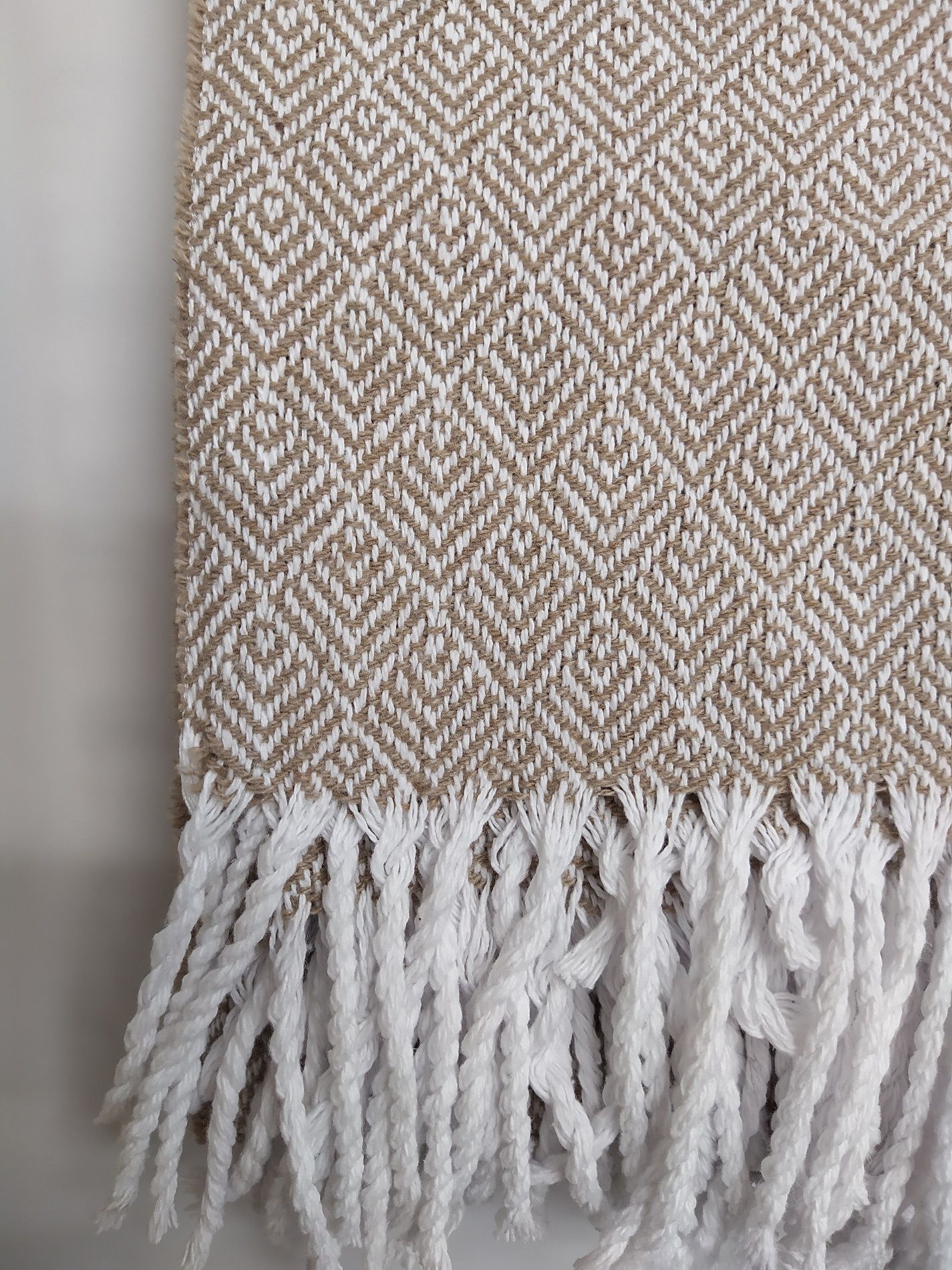 Плед Валенсия с бахромой Влади, белый/ песочный 9012516 MARE, 140*200, белый/ песочный, 1.5 спальные