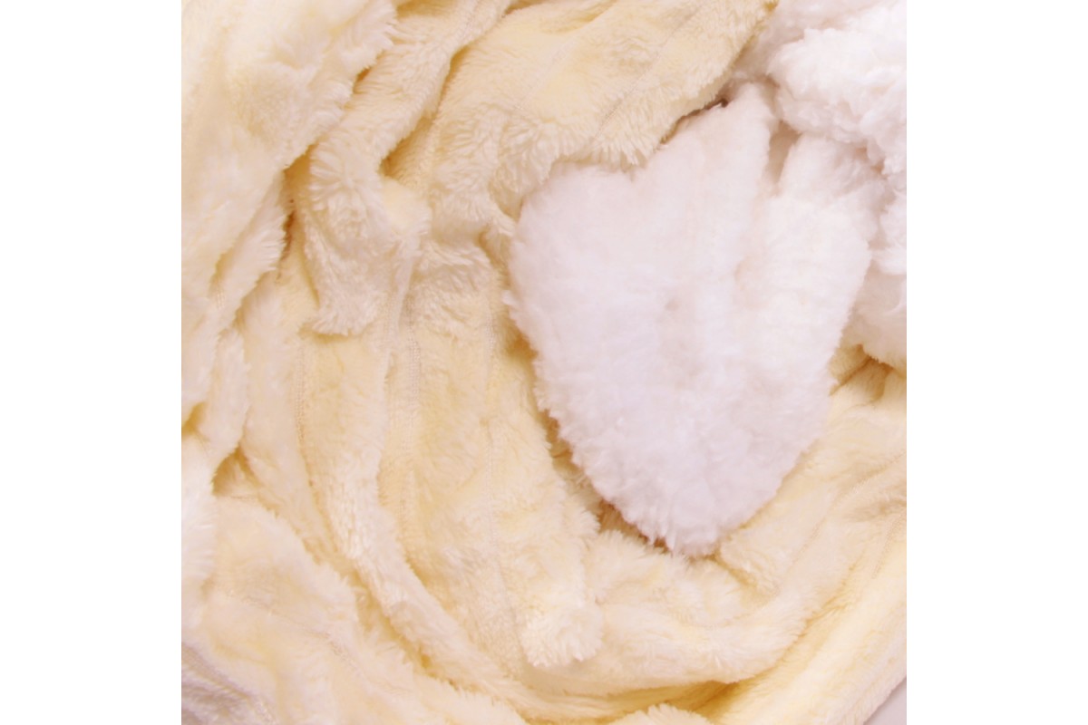 Пледы велсофт из полиэстера (ПЭ) очень легкие, меньше изнашиваются, быстро высыхают, сохраняют форму и тепло. К тому же, они устойчивые к прямому свету и теплу, простые в уходе, не вызывают аллергии, мягкие и приятные на ощупь.