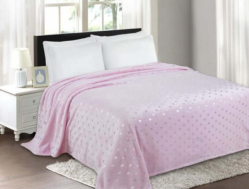 Плед велсофт Премиум "Сердечки" розовый-серебро 150*200 см.