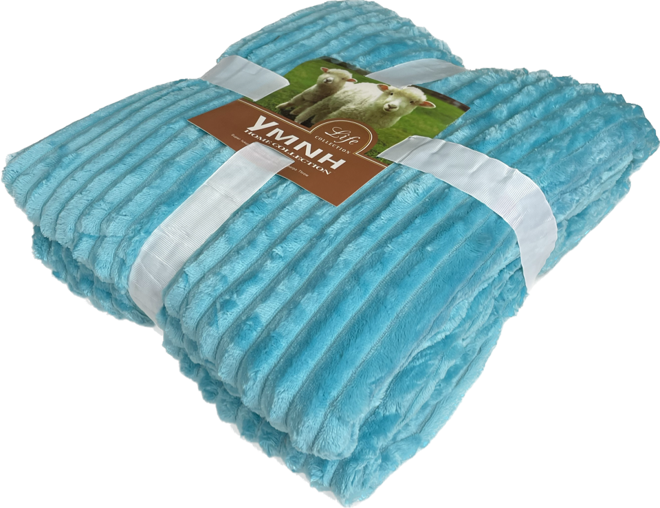 Плед велсофт УМИН ПОЛОСА р-р 200х220 - морская волна
